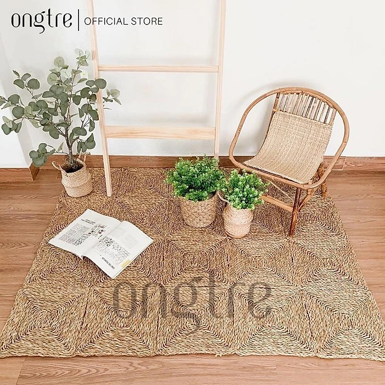 Thảm trải sàn ONGTRE /decor ô vuông 30x30cm bằng cói hình chữ nhật