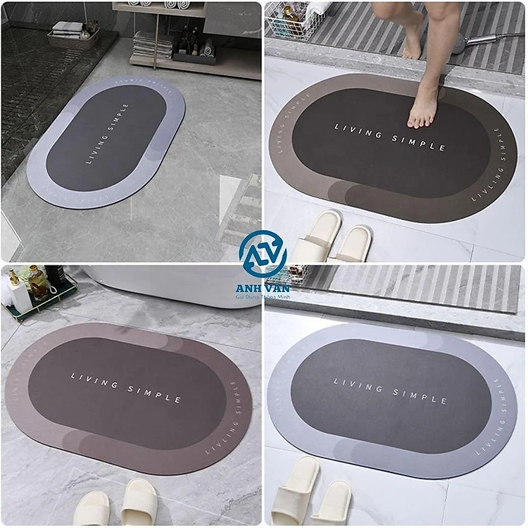 Thảm lau chân Silicon Hình Elip lót cửa chùi chân, siêu thấm hút, chống trượt cho phòng tắm (60x40cm)