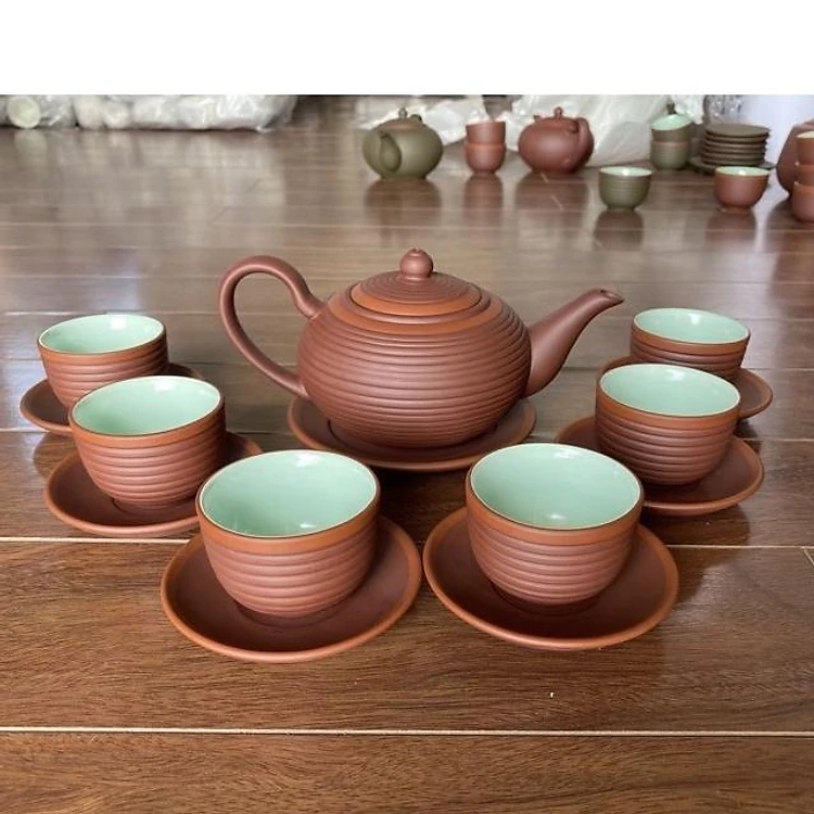Ấm chén tử sa bát tràng dáng tống ganh nâu lòng xanh