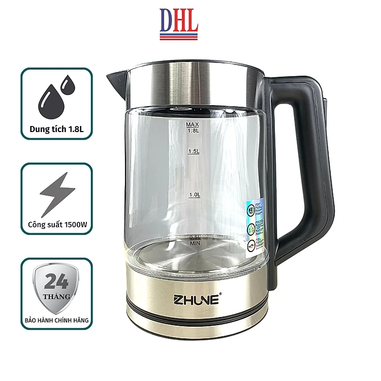 Ấm siêu tốc, ấm thủy tinh cao cấp ZHUNE 1.8L công suất 1500W hàng chính hãng