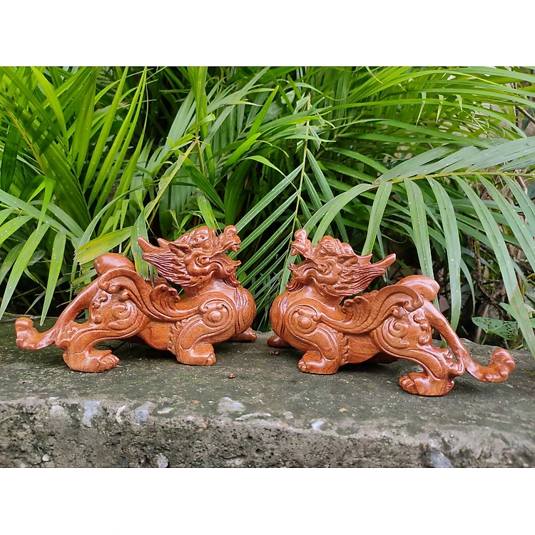 Cặp tượng đôi tỳ hưu bằng gỗ hương đá kt 20×11×8cm