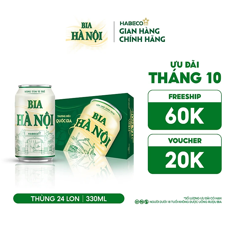 Bia Hà Nội Nhãn Xanh - Thùng 24 lon 330ml