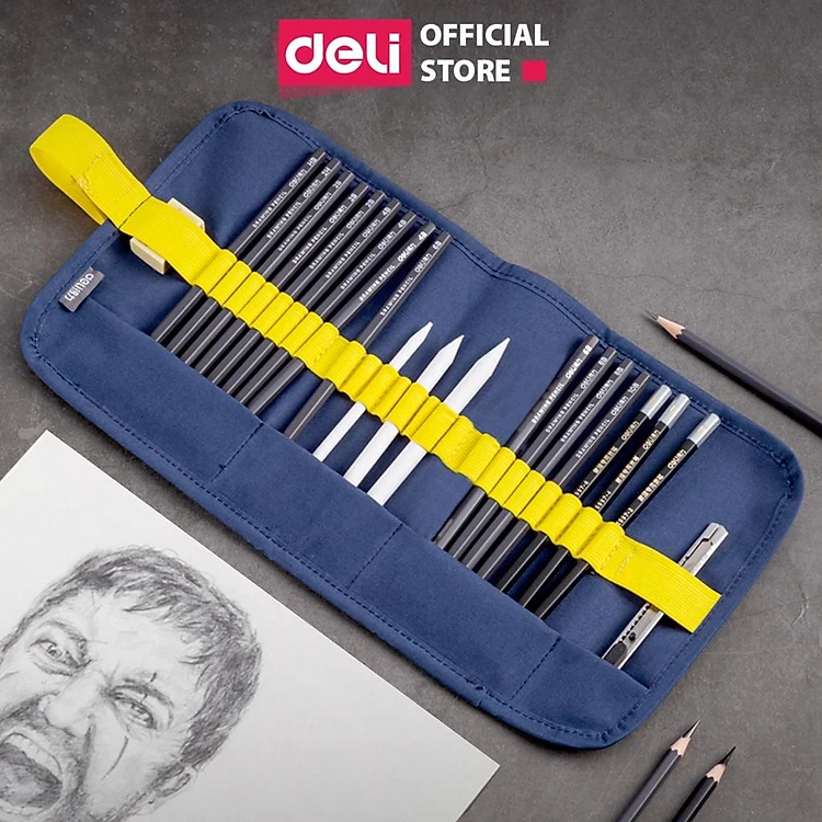 Bộ Túi Dụng Cụ Vẽ Phác Thảo 22 Phụ Kiện Deli -Vẽ Mỹ Thuật Được Giáo Viên Đề Xuất