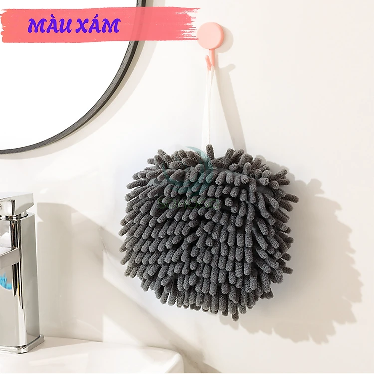 Khăn Lau Tay Treo Tường Microfiber - Khăn Lau Tay Siêu Mềm Dạng Tròn Treo Nhà Bếp/Nhà Tắm - Khăn Treo Tường Dạng Tua Mềm Mại - Khăn Lau Tay Thấm Hút Hình Quả Cầu Khăn Lau Tay Decor Gắn Tường Microfiber