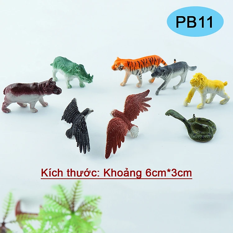 Bộ Mô Hình Nhựa Đồ Chơi 8 con Hổ Rắn Đại Bàng Tê Giác Chó Sói Khỉ Hà Mã PB11