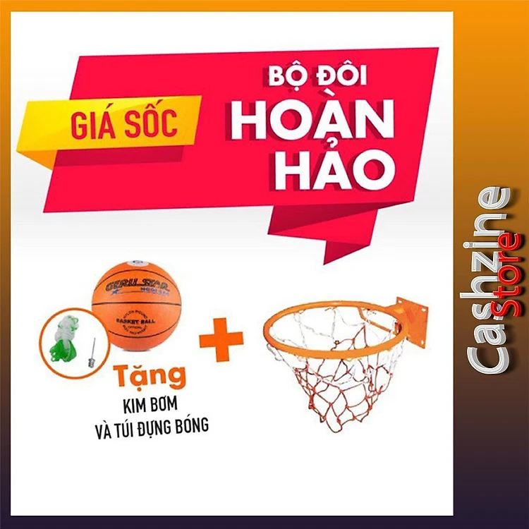 - Sản phẩm đi kèm có kim bơm bóng và lưới đựng quả bóng rổ.