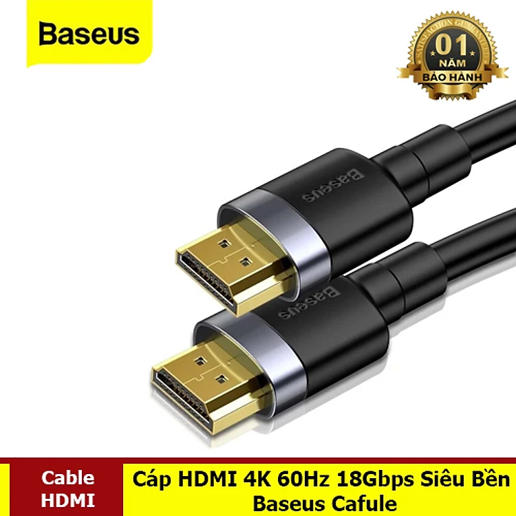 Cáp HDMI 4K 60Hz 18Gbps Dây Cao Su Siêu Bền Cafule Hỗ Trợ Lên Đến 32 Kênh Âm Thanh - Hàng Chính Hãng Baseus
