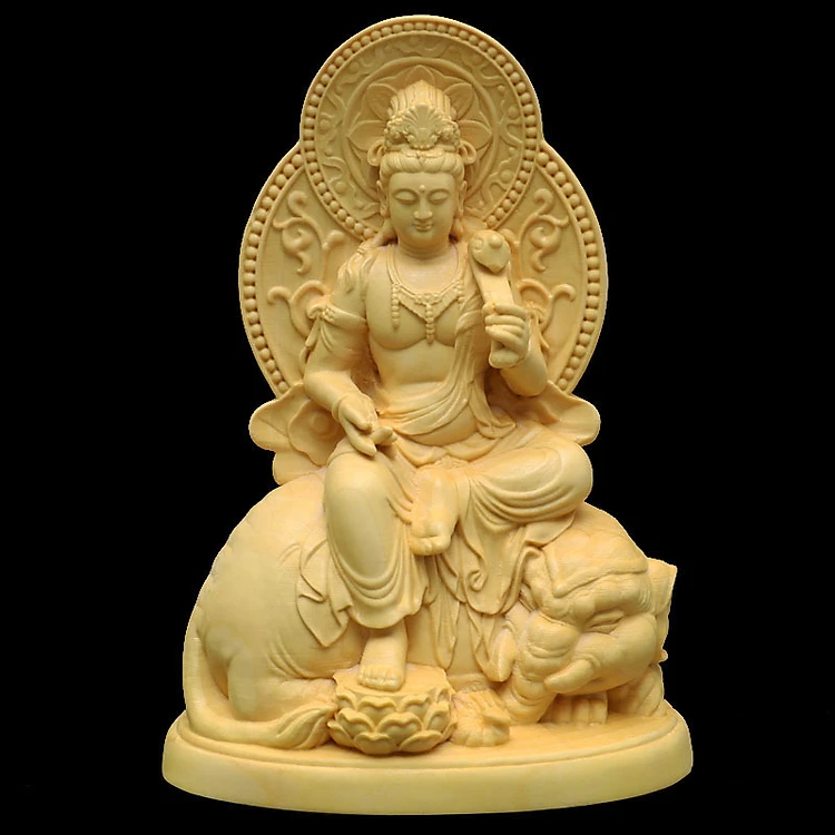 Tượng phật Phổ Hiền Bồ Tát cưỡi voi bằng gỗ Hoàng Dương V550