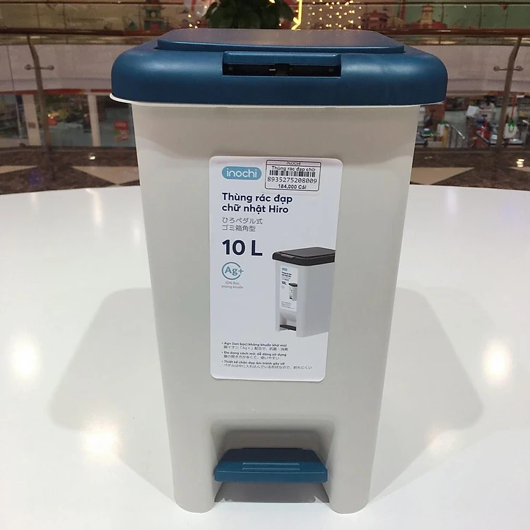Thùng rác đạp chữ nhật Hiro 10L (Kèm ruột) - Chính hãng INOCHI
