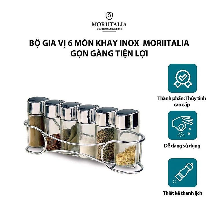Bộ gia vị 6 món khay inox gọn gàng tiện lợi Moriitalia 8142002