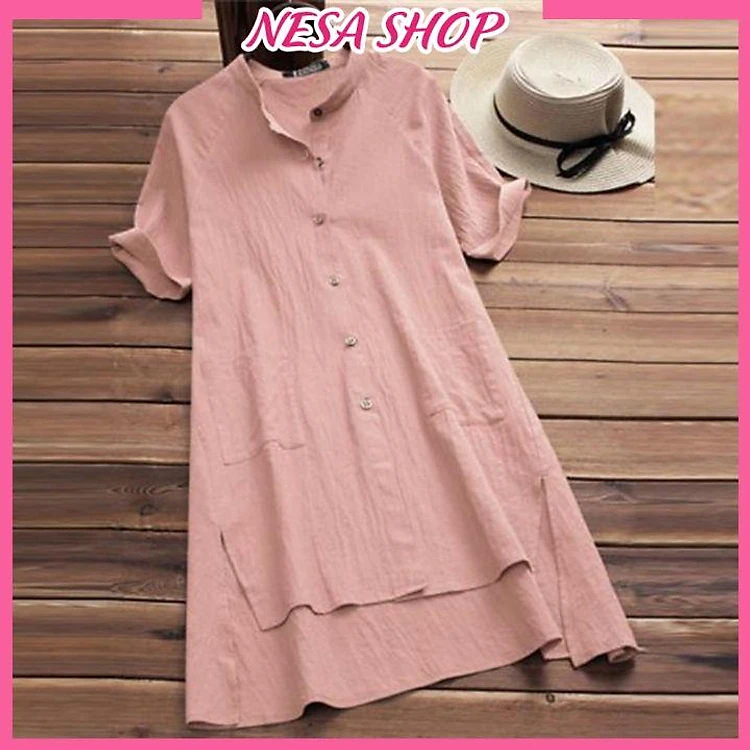 Áo sơ mi váy dáng dài, chất liệu đũi mềm mịn, áo váy nữ, form dài rộng kiểu Hàn Quốc, NeSa Shop AKH.35