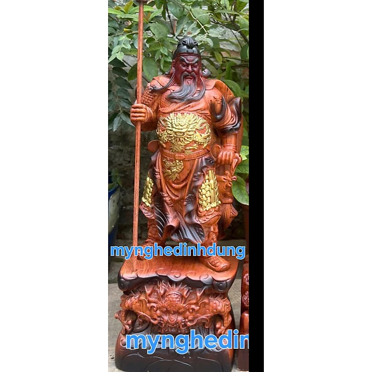 Tượng quan công cầm đao trấn ải bằng gỗ hương đa tô làm mầu giả cổ kt cao 60×25×15cm