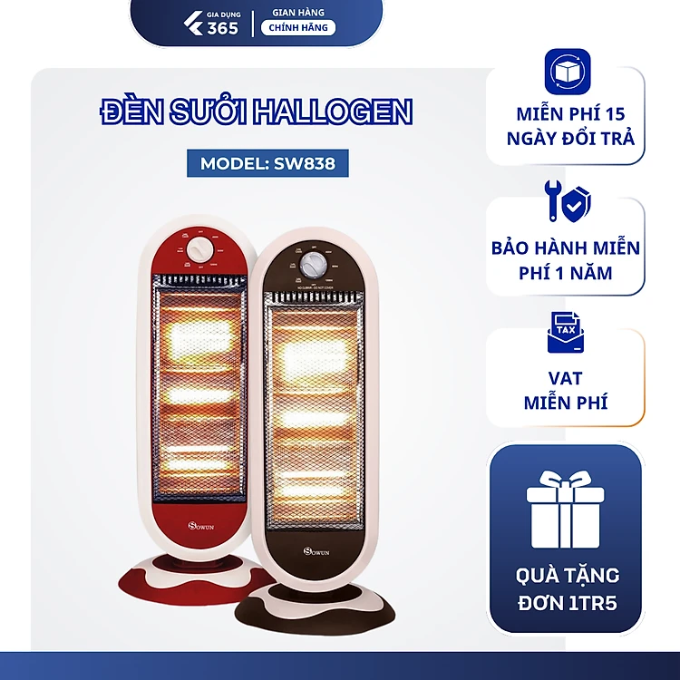 Máy Sưởi HALOGEN SOWUN SW838 Dùng Cho Phòng Tắm, Phòng Ngủ - Làm Ấm Nhanh - Tiết Kiệm Điện