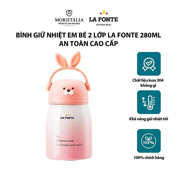 Bình giữ nhiệt em bé La Fonte màu hồng 2 Lớp 280ml an toàn cao cấp 006651-Pin