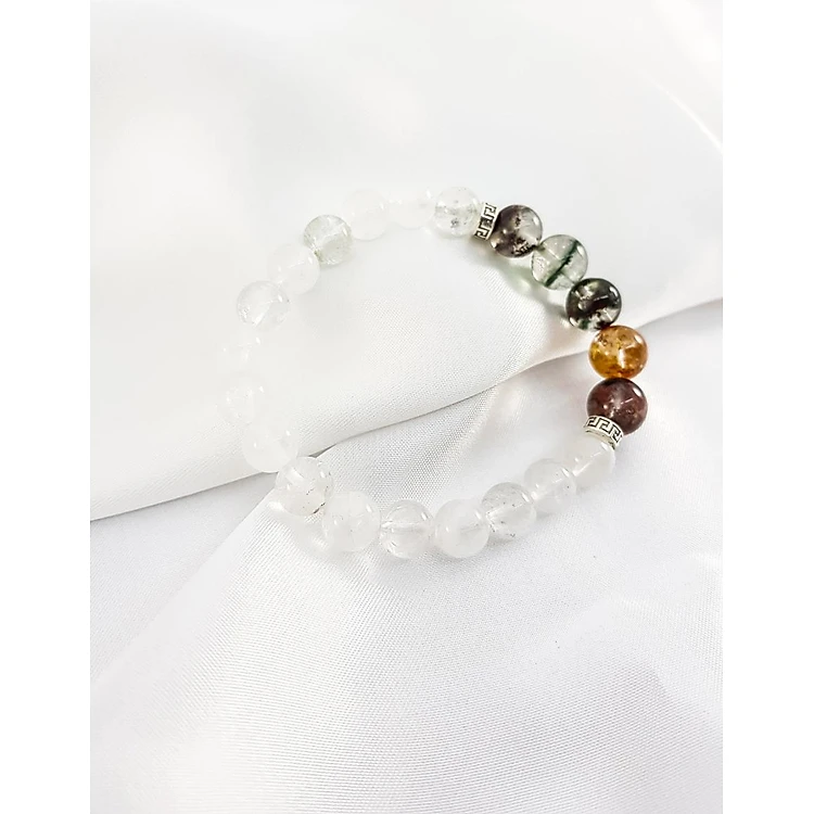 Vòng tay mệnh kim, thủy đá thạch anh ưu linh trắng mix đá ưu linh ngủ sắc