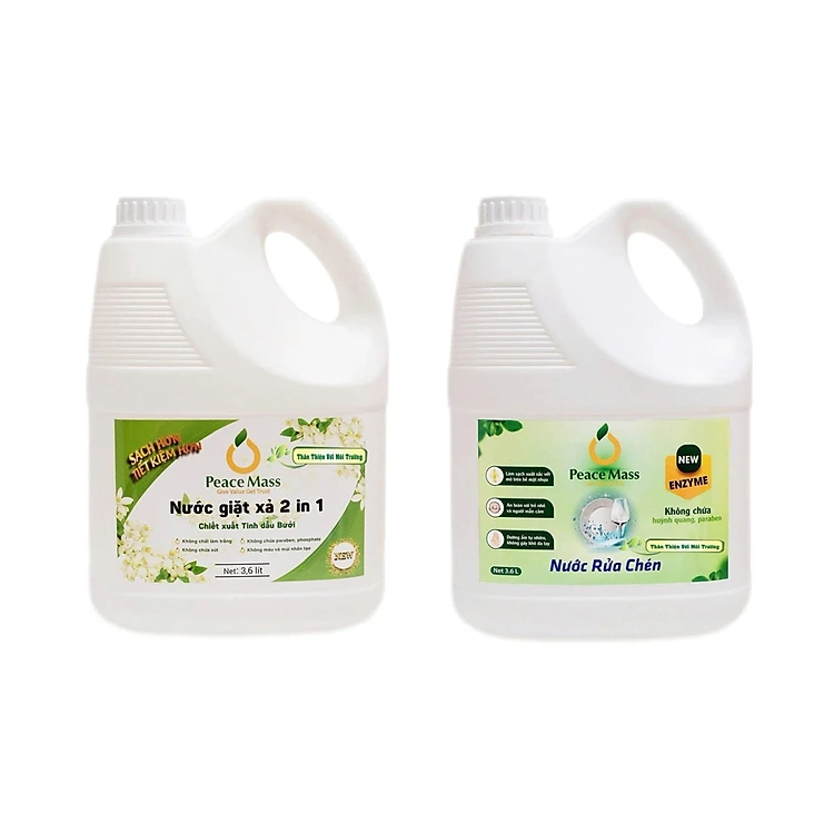 Combo Sản Phẩm Peace Mass - Nước Giặt Xả 2 in 1 3.6l + Nước Rửa Chén 3.6 lít