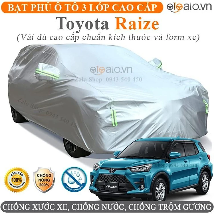 Bạt phủ xe ô tô Toyota Raize Cao Cấp 3 Lớp Chống Nắng Nóng Chống Nước Chống xước