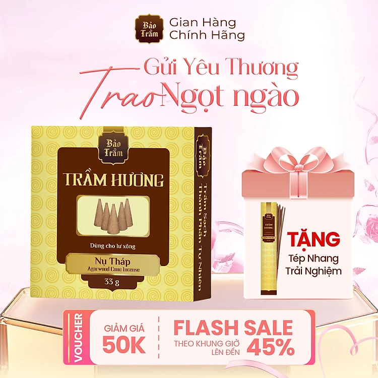 Trầm Nụ Tháp Bảo Trầm – Hộp Vàng 33g | Nụ Trầm Xông Lư – Thơm Sâu Thanh Tịnh | Tự Nhiên