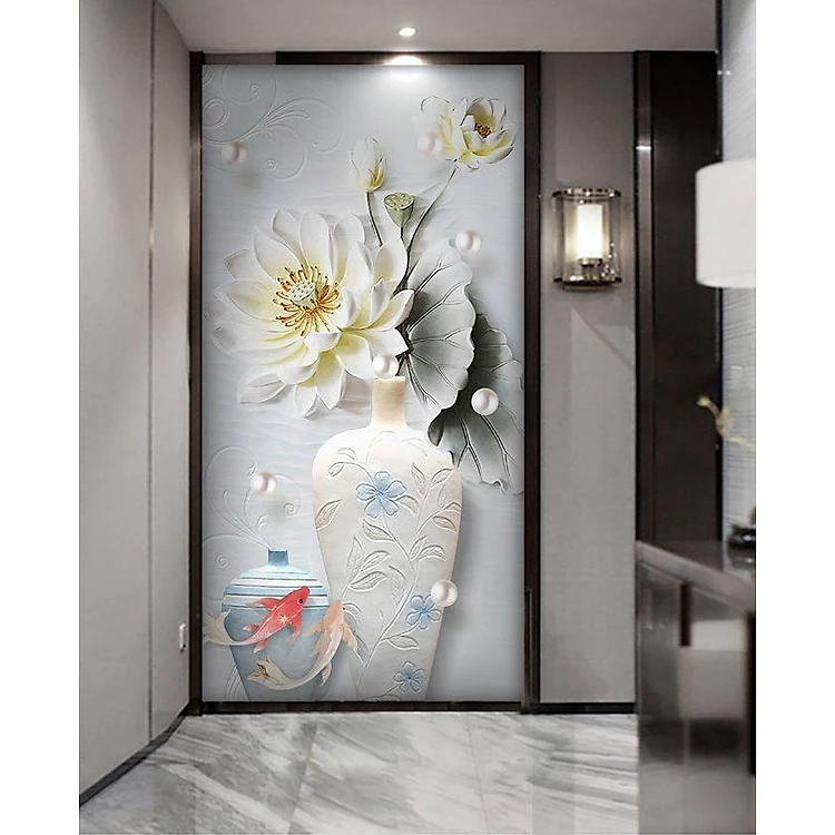 Tranh dán tường 3D hoa sen trắng 1 TDT03