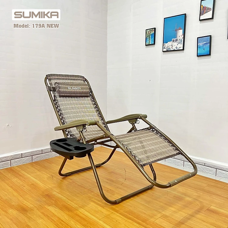 Ghế xếp thư giãn SUMIKA 179A NEW - Màu vàng đồng, khóa kim loại, khung thép, tải trọng 200kg