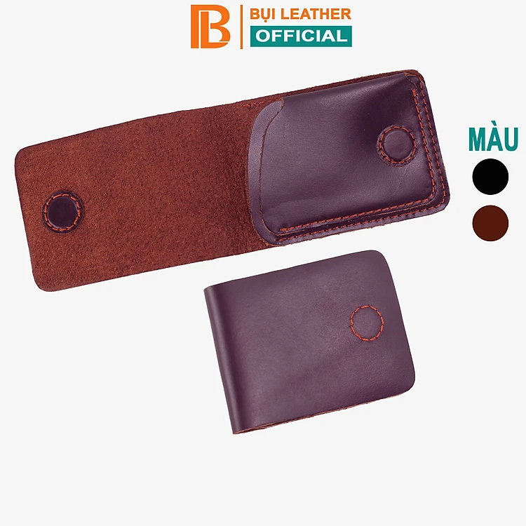 Ví sen 3 da bò Pullup V122, bóp mini nam nhỏ gọn hai màu đen và nâu, đường chỉ may tinh tế, đựng thẻ kẹp tiền tiện lợi,fullbox, thương hiệu Bụi leather chuyên đồ da thật