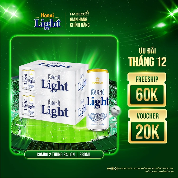 Combo 2 Thùng Bia Hanoi Light - Thùng 24 lon 330ml