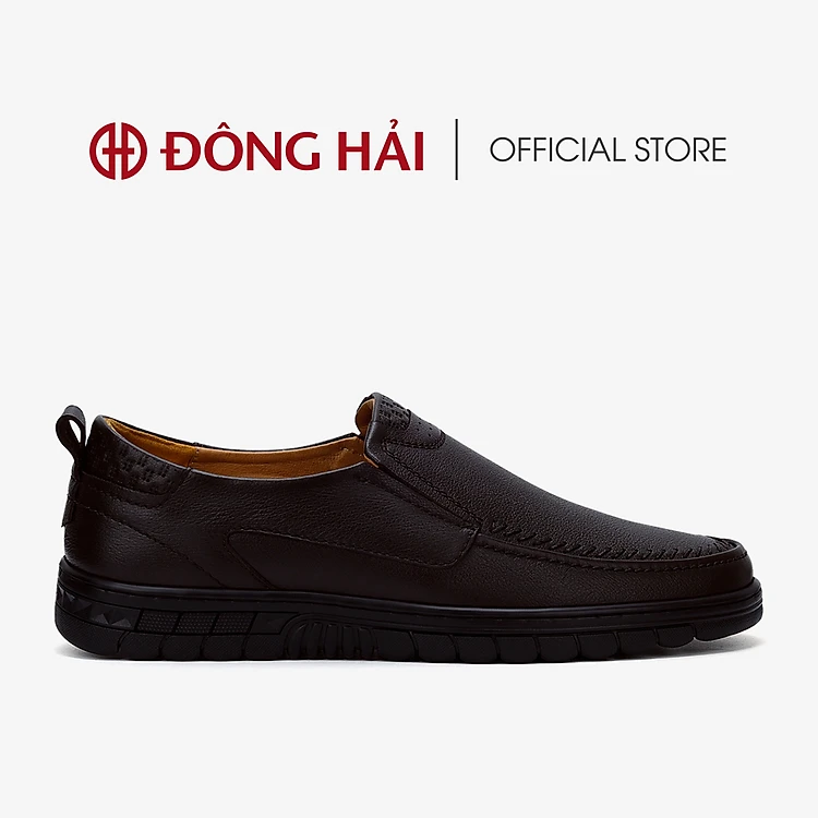 Giày lười nam Đông Hải da bò cao cấp thiết kế tối giản với chỉ may nổi ấn tượng đế cao su 3cm chắc chắn - G0343