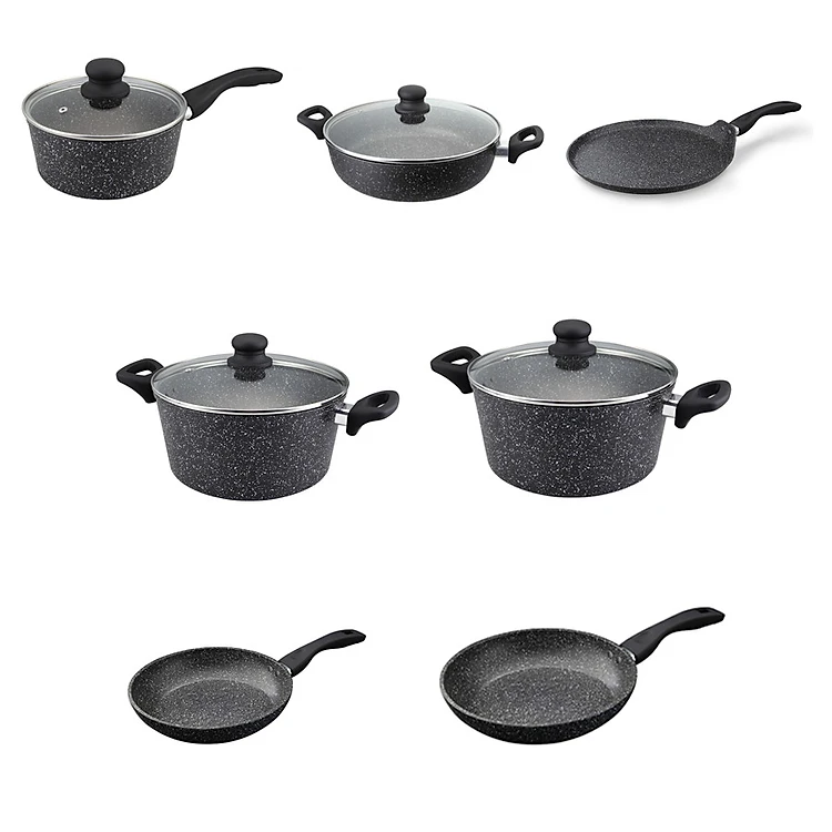 Westinghouse Bộ Nồi 7 Món gồm: 1 nồi cháo 18cm, 1 nồi lẩu 32cm, 1 chảo 24cm, 1 chảo 28cm, 1 nồi to 24cm, 1 nồi luộc gà 28cm, 1 chảo mỏng nướng 28cm.