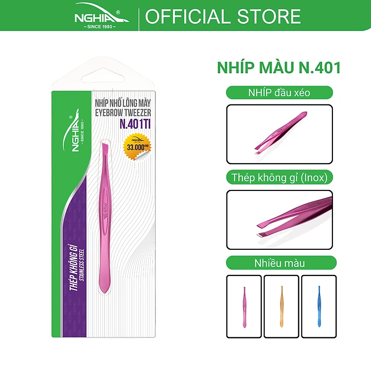 Nhíp Inox Đầu Xéo Vỉ Giấy Màu Tím KỀM NGHĨA N.401TI