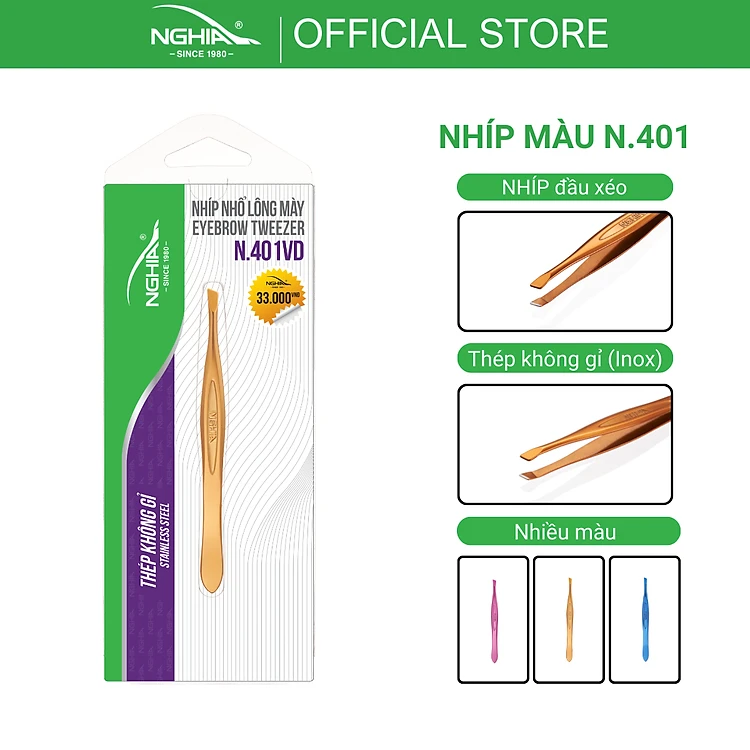Nhíp Inox Đầu Xéo Vỉ Giấy Màu Vàng Đồng KỀM NGHĨA N.401 Vàng Đồng