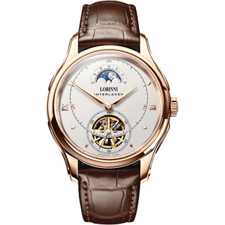 Đồng hồ nam chính hãng LOBINNI LB13023G-D1 hàng mới 100%,Kính sapphire ,chống xước,chống nước 50m,mặt trắng vỏ vàng hồng dây da nâu xịn, thép không gỉ 316L,Đồng hồ cơ (Automatic) bảo hành 24 tháng, Mới 100%,thiết kế đơn giản trẻ trung và sang trọng