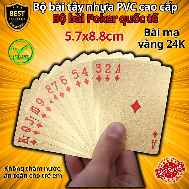 Bộ Bài PVC Mạ Vàng 24K Mạ Bạc Cao Cấp Chất Liệu Đàn Hồi, Bộ Bài Tây Poker Polieste Không Thấm Nước, Hàng Chính Hãng