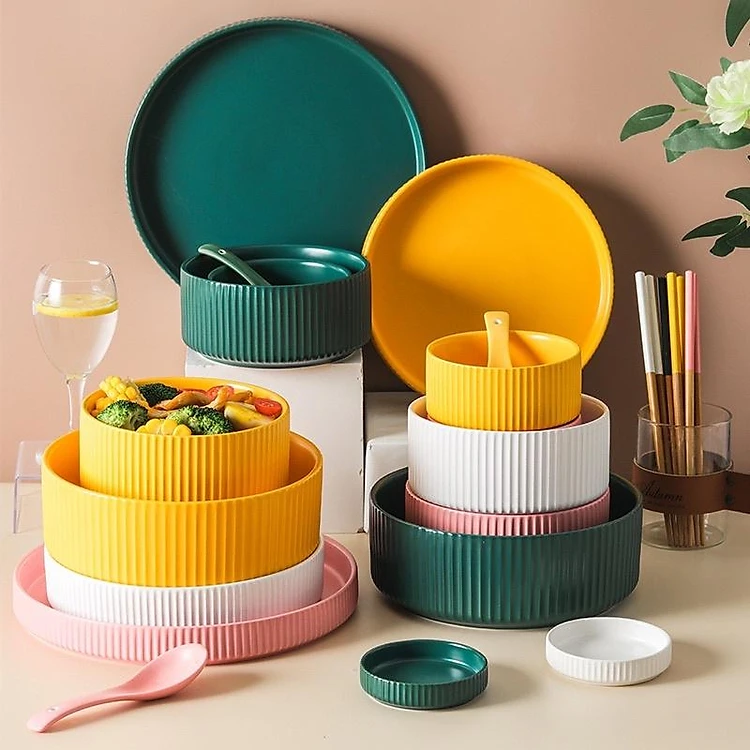 Tô Sứ Vân Sọc, Tô đựng mì salat , Tô canh sứ màu La Mã cao cấp không chì