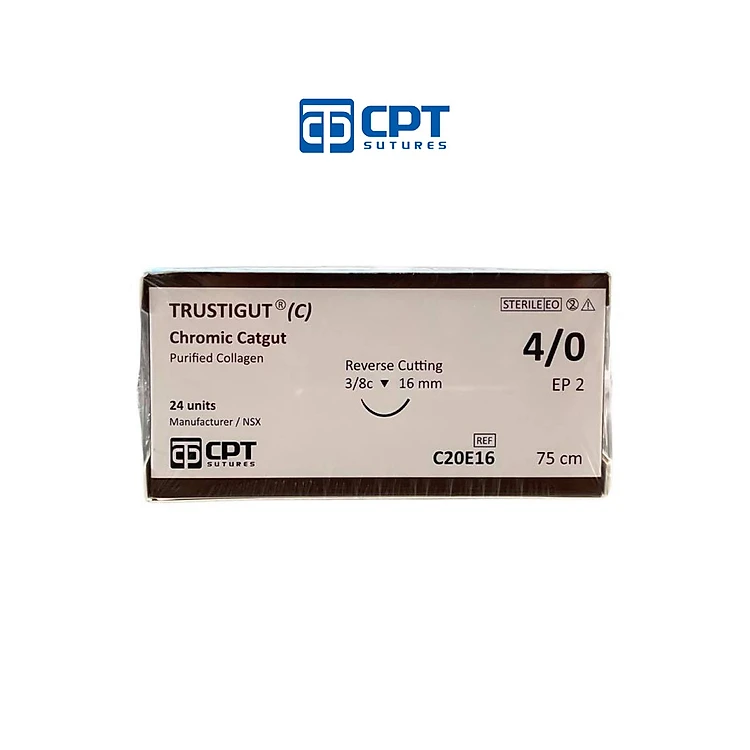 Chỉ phẫu thuật tự tiêu tan chậm CPT Trustigut (C) Chromic Catgut số 4/0 - C20E16