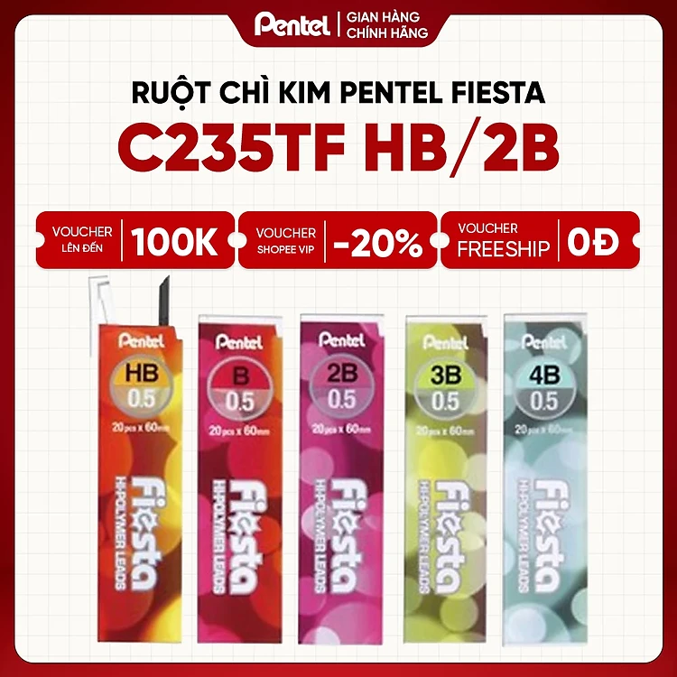 Ruột bút chì kim Pentel C235TF HB/2B ngòi 0.5mm (20 Ruột/Tuýp)