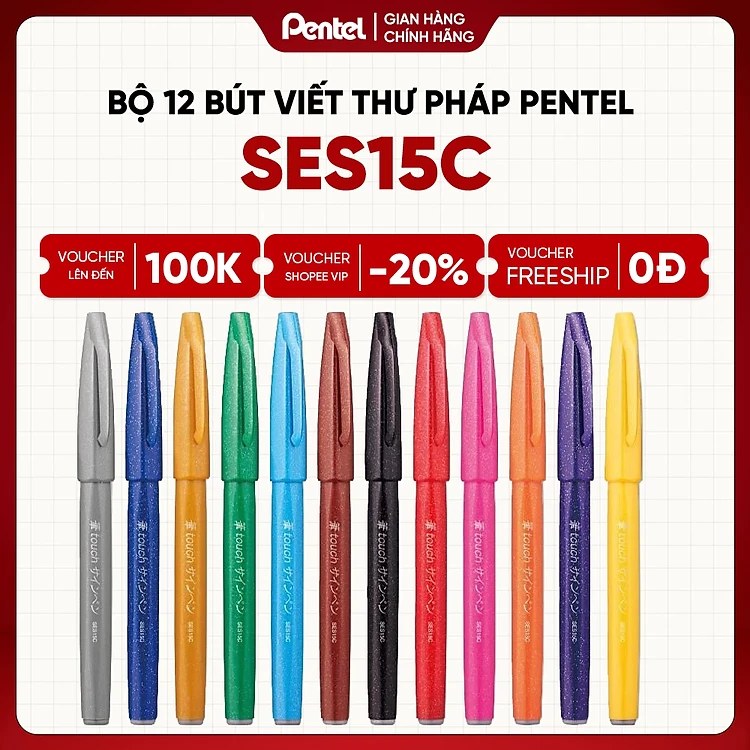 Bút viết thư pháp Pentel SES15C 12 màu cơ bản