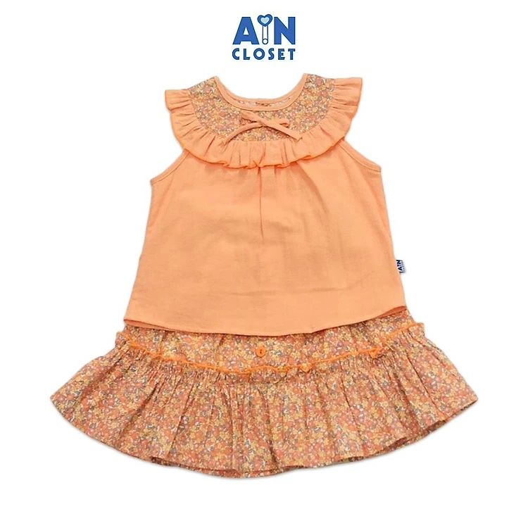 Bộ áo váy ngắn bé gái họa tiết Hoa nhí cam nhiệt đới cara - AICDBGMAC07U - AIN Closet