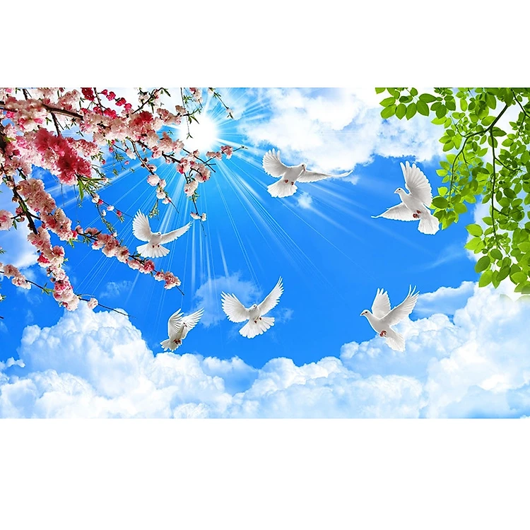 Tranh trần nhà 3D hoa anh đào 3 TN53