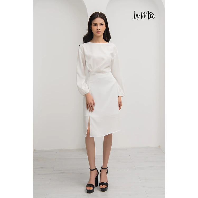 Đầm Công Sở Lụa Hàn Cổ Thuyền Xẻ Tà Maxivic, La Mộc - LM92114
