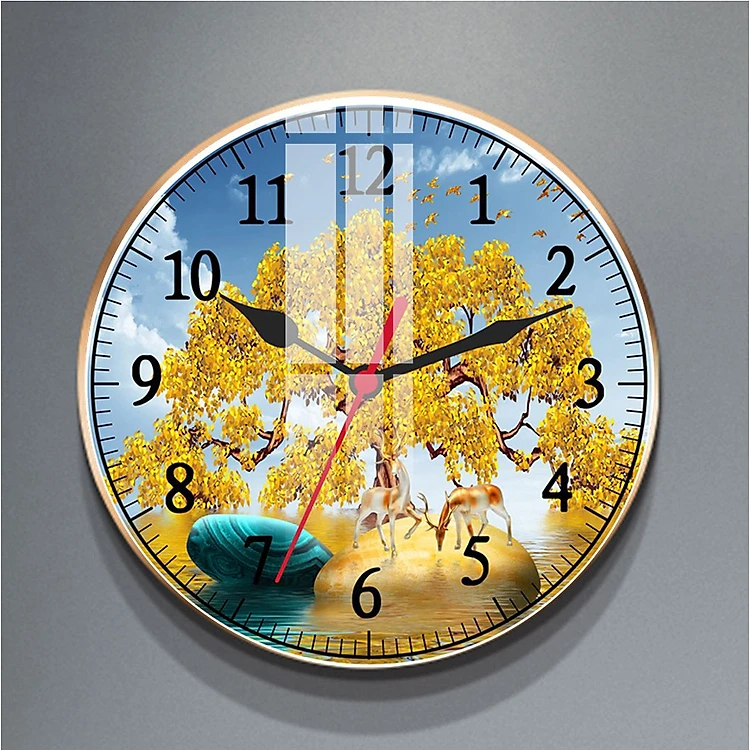 Đồng Hồ Treo Tường Tráng Gương Hươu Và Cây Lá Vàng (Đường Kính 40cm)
