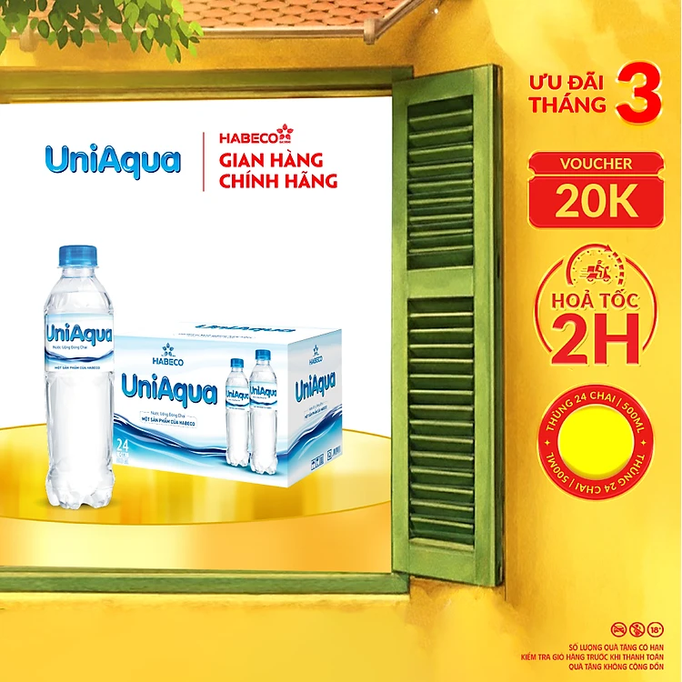 Nước uống đóng chai UniAqua - Thùng 24 chai 500ml