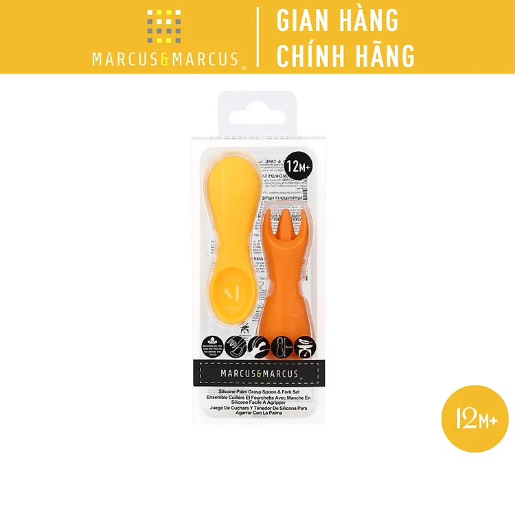 Bộ thìa nĩa tập ăn silicon cho bé Palm Grasp Marcus & Marcus, từ 12 tháng