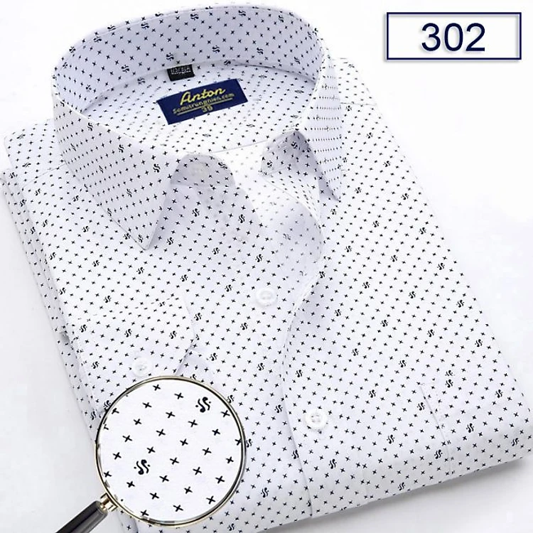 Áo Sơ Mi Nam Công Sở Trung Niên Dài Tay Trắng Thương Hiệu Anton Vải Cotton Họa Tiết Chấm Bi Nhỏ - 302