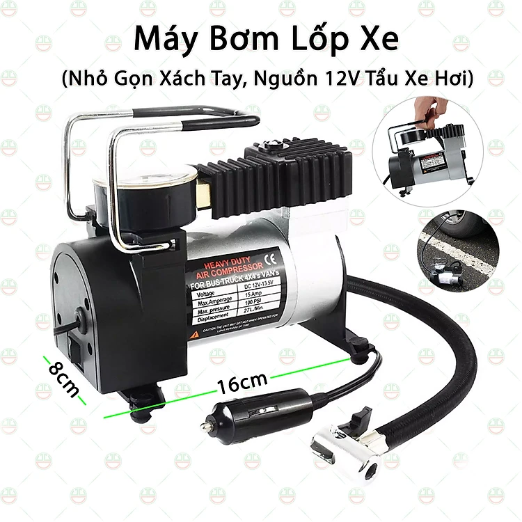 Máy Bơm Lốp + Nguồn 220V sang Tẩu 12V