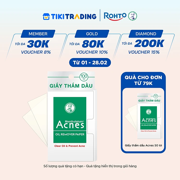 Giấy thấm dầu kiểm soát nhờn, ngừa mụn Acnes Oil Remover Paper 100 tờ