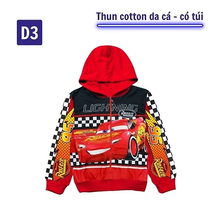 Áo khoác bé trai hình xe Mc Queen từ 10-43kg. Chất thun cotton da cá thoáng mát - hình đẹp không bong tróc