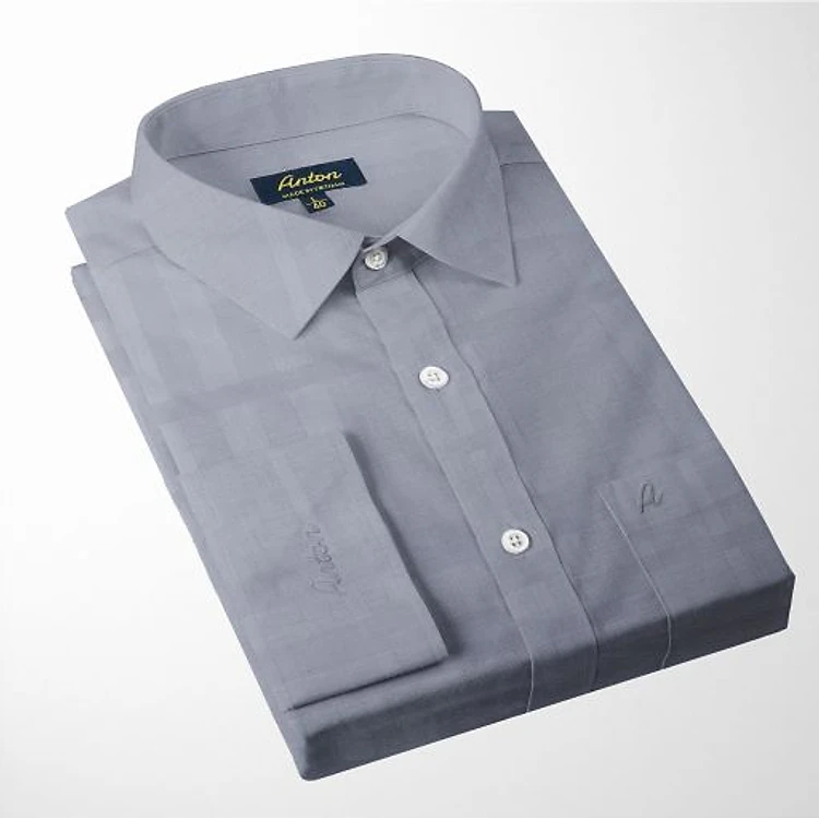 Áo Sơ Mi Nam Công Sở Trung Niên Thương Hiệu Anton Dài Tay Màu Xám Ghi Họa Tiết Kẻ Caro Chìm – AT202
