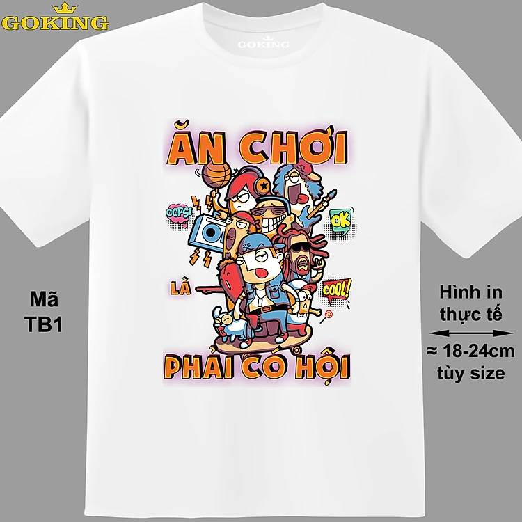 Ăn chơi là phải có hội, mã TB1. Áo thun team building đồng đội, áo phông đẹp cho lớp nhóm, công ty. Áo phông hàng hiệu Goking, form unisex cho nam nữ, trẻ em, bé gái trai