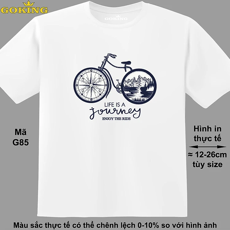 Xe đạp, mã G85. Áo phông hàng hiệu GOKING, form unisex cho nam nữ, trẻ em, bé trai gái. Áo thun in hình đẹp. Quà tặng cao cấp cho gia đình, cặp đôi, hội nhóm, doanh nghiệp