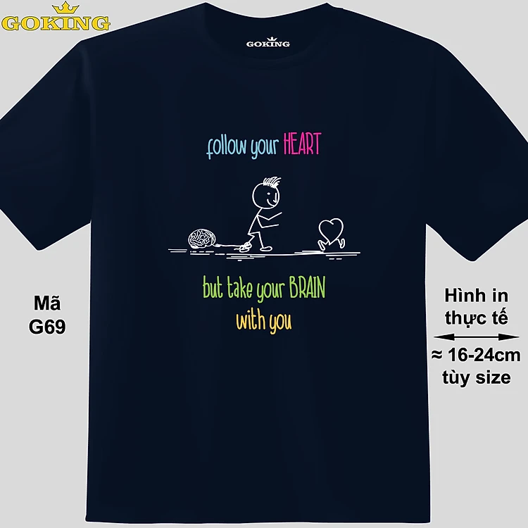 Follow your HEART but take your BRAIN with you, mã G69. Áo phông siêu dễ thương cho nam nữ, form unisex. Áo phông hàng hiệu Goking, quà tặng cao cấp cho gia đình, cặp đôi, doanh nghiệp